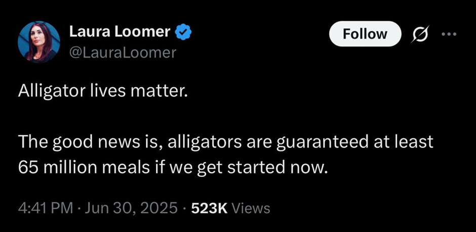 The fact that MAGA is a very specifically American fascism really drove itself home for me recently when I saw an ad for official “Alligator Alcatraz” merch.