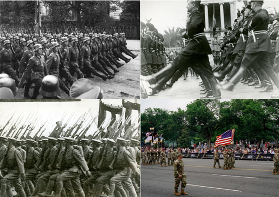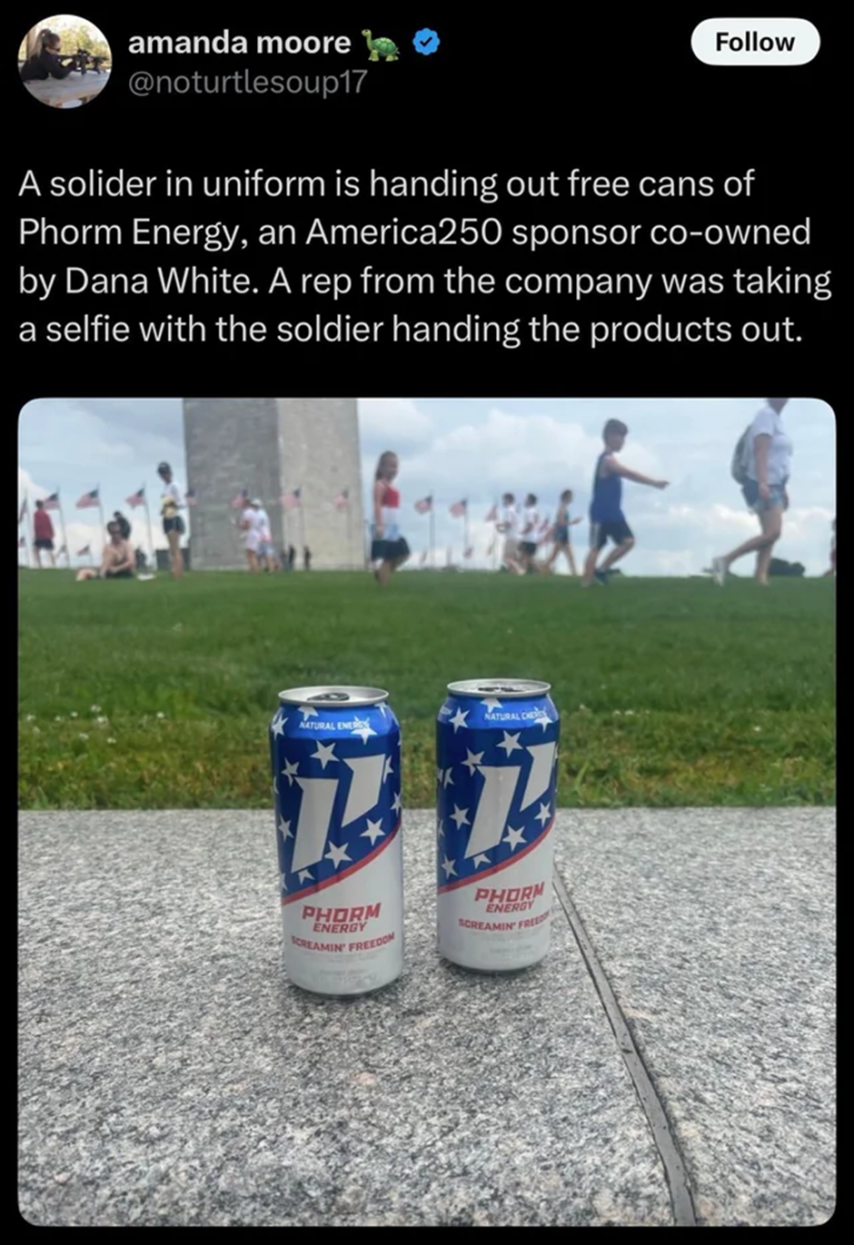 Fascism is an embrace of a cultural identity taken to its absolute extent and then stretched and strained further until the membrane turns pale. America’s fascism, to that end, leans all the way into the tropes of Americana that foreign nations find the most obnoxious and comical—the fast food, the guns, the bombastic, loud, presumptuous entitlement of it. America isn’t a regimented and disciplined machine. It’s a fat, arrogant bully. When it attempts its own take on one of the more recognizable fascist tropes—the military parade—it’s not a chilling display of cold, raw, single-minded ambition. It’s soldiers plodding down the road like they’re walking home from a concert, while other uniformed officers embarrassingly hand out energy drinks by one of the administration’s favored companies.