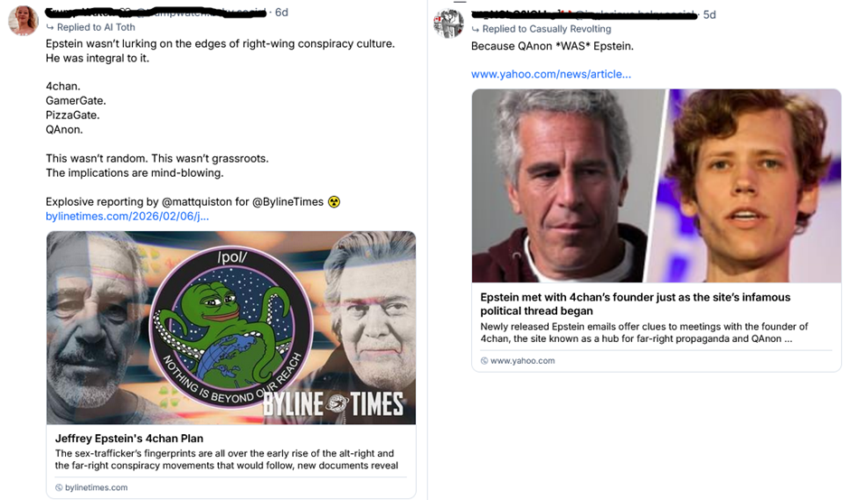 This revelation has been explosive, and long articles have been written about its implications: Jeffrey Epstein was the true father of /pol/, which makes him the founder of the alt-right, the ringleader of Gamergate, and the architect of the MAGA movement. Following that, he created Pizzagate and QAnon to “weaponize paranoia.” People are theorizing that he was “Q.”