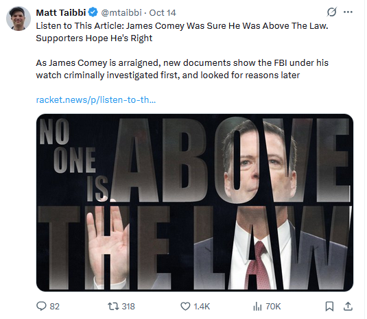 Taibbi has said numerous times that free speech is a right-wing virtue that used to belong to the left until they dropped it as a tenet. This is illusory. The only reason that hardline speech freedom appears to be right-coded is because, when your beliefs are in the minority, you feel suppressed. The right dropped free speech like a hot rock the second Trump came to power again—and so did Taibbi.