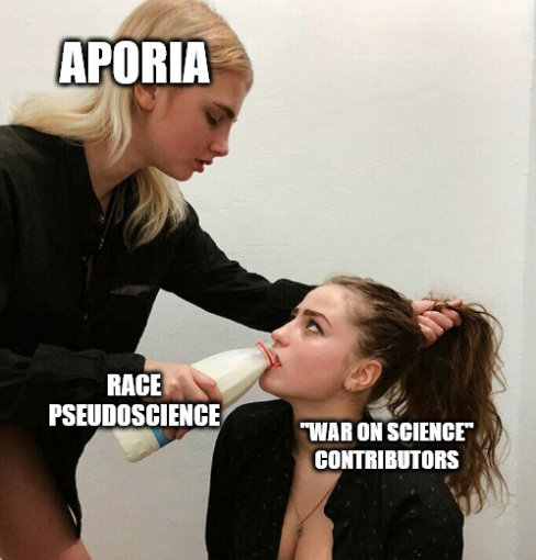 Some of the contributors to Krauss’ The War on Science are more nefarious than others. In any case, the Aporia universe has deeply, deeply infected the whole crop of intellectuals who want to be trendy and appear heterodox and anti-woke. Even if you’re careful to avoid getting any explicit white nationalists, if you scoop up any number of anti-woke scientists to write papers for you, you are inevitably going to get a whole bunch of Aporia bullshit.