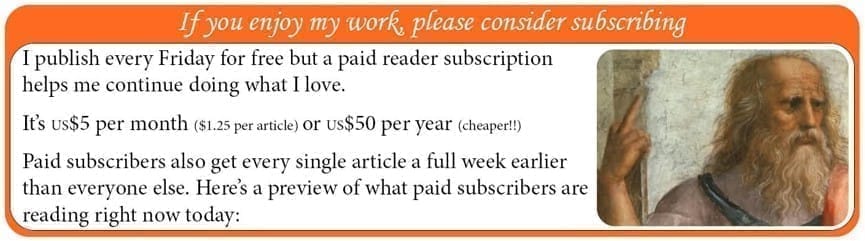 Hey, you know what else is well-funded by far-right Silicon Valley oligarchs? The current war against democracy, which I’m writing a book about. It's an analysis of how the internet, in merely its first 25 years of existence, has changed western culture and dragged it toward the far right. The working title is How Geeks Ate the World and I’m going to be dropping parts of the draft into this very newsletter as the project comes along—but only for paid subscribers. A new chapter is coming out this very weekend! So if you want to read along in real time, please consider subscribing. Otherwise I’ll be keeping you in the loop. Check it out here:
