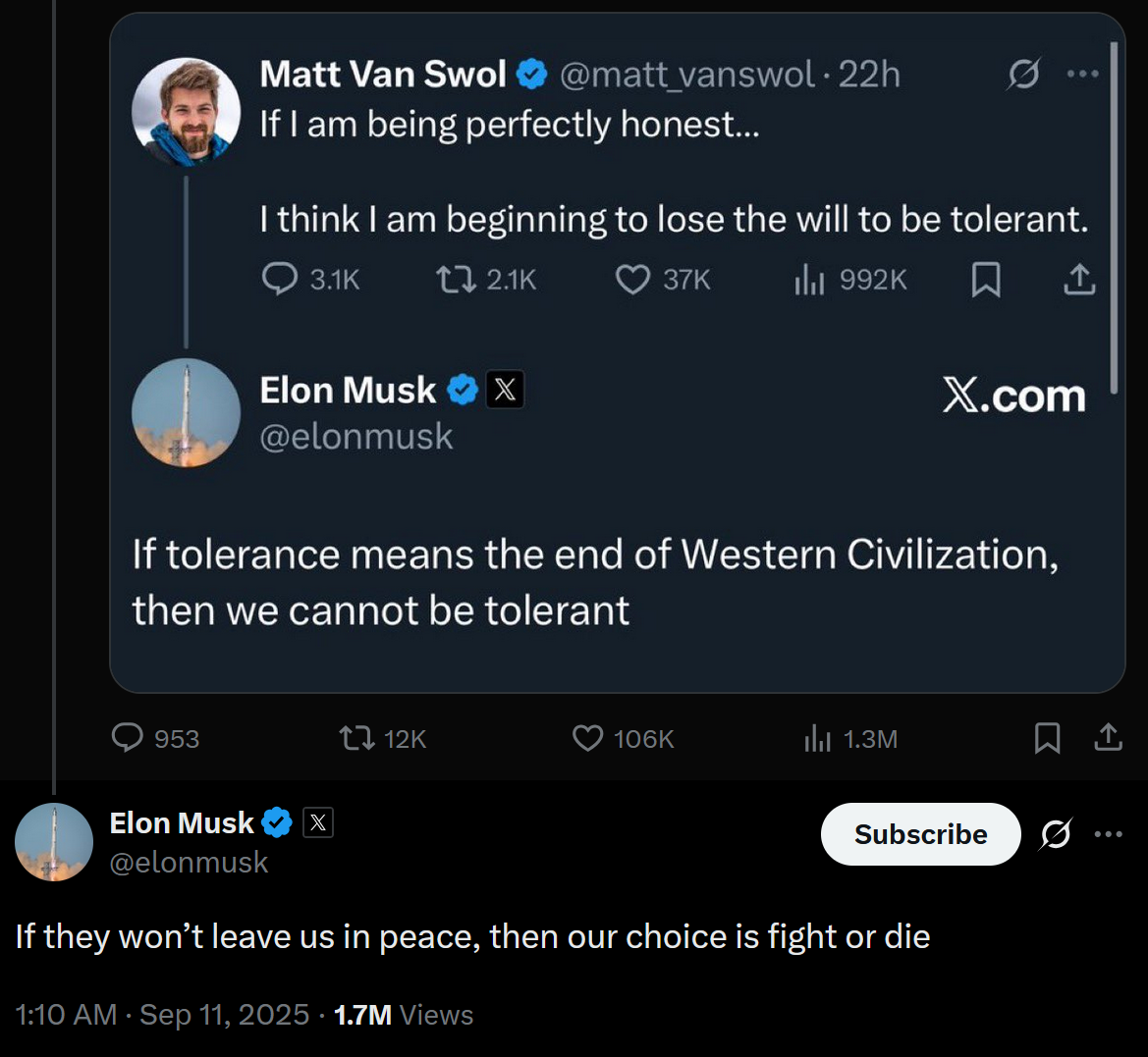It needs a new introduction, which is this: On this very week of September last year, I published a piece titled The Myth of "Lowering the Temperature" of Western Politics, which contained a serious point stated in a joking way about how Charlie Kirk was playing a dangerous game of rhetoric that would one day get him shot. This was not a threat, it was a prediction.