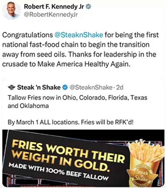 Even RFK Jr’s idiotic pressure campaign to compel fast food restaurants to use beef tallow in their fries has no basis in “health,” but for a return to how fast food apparently used to taste.