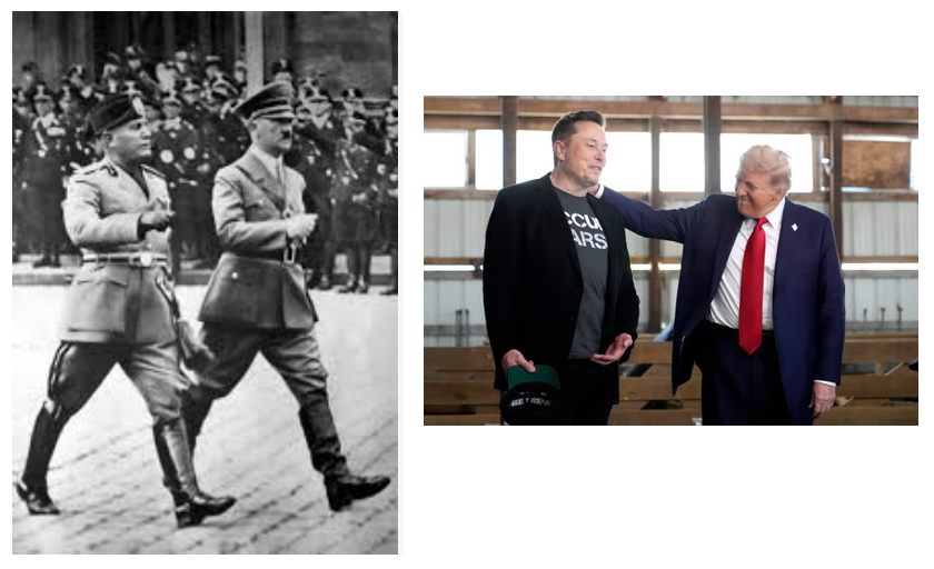 Mussolini was an aggressive hypermasculine bully who demanded unquestioning subservience and sought to project raw power and replenish the glory of Rome. Hitler, however, was a shrieking dipshit who complained about how hard done by he was and thought white people were owed something by birthright and his country was full of Woke and it was all the Jews’ fault.