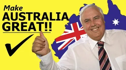 And then there’s Clive Palmer, who embodies all of Trump’s “being a fat, obnoxious, far-right, billionaire lunatic” energy, too rich to fail despite his batshit ideas, and who actually does get called Australia’s Trump due to his directly ripping off Trump’s entire campaign slogan and aesthetic.